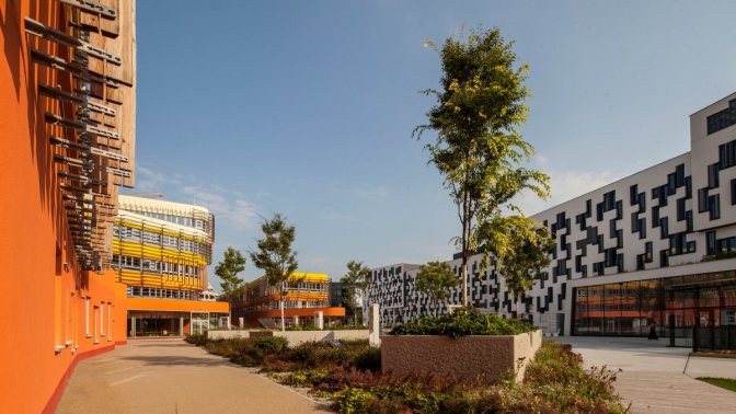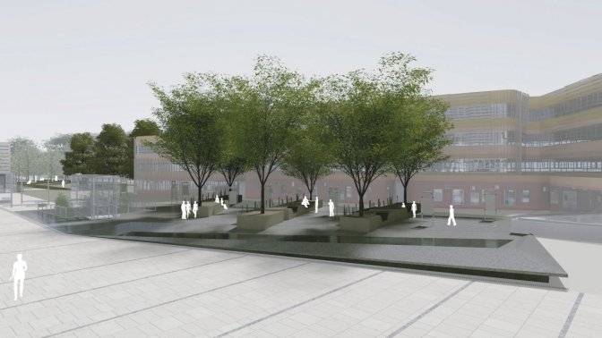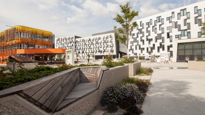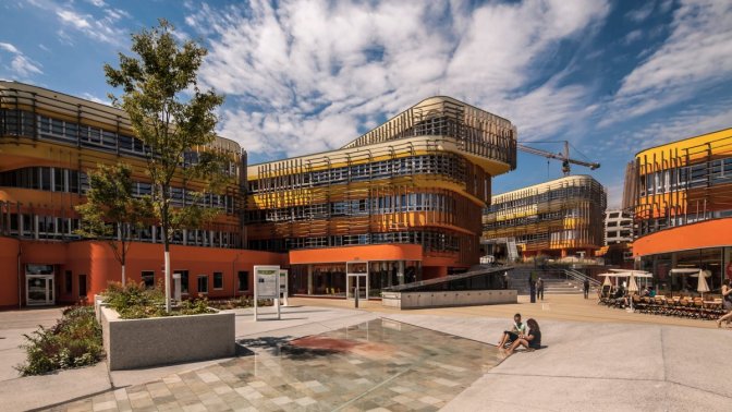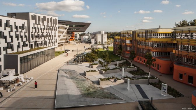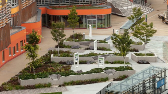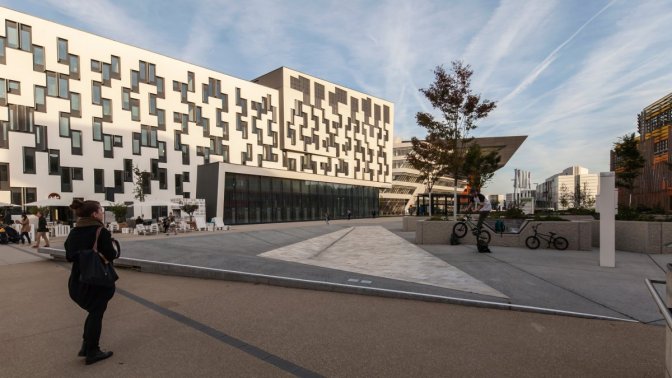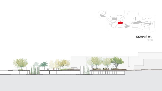 Der Expo Platz vor den Spezialbibliotheken lädt zum Lesen und zum Entspannen im schattigen Aufenthaltsfreiraum. Dieser Freiraum fließt zu den verschiedenen Eingängen des Gebäudes und wird durch Sichtbetonmauern, die lange Sitz-/Liegebänke und Pflanzentröge enthalten, gebildet... ☛ READ MORE