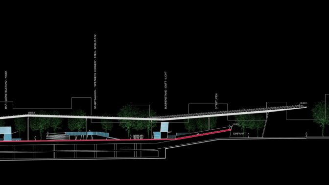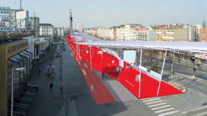 Die Grundprinzipien der Orts bauen auf der Überlagerung folgender Systeme auf: Die Leere wird durch einen „roten Teppich“ gespannt, es entsteht die urbane Plattform des Austauschs. Der Nordrand zur Reeperbahn wird als Drehscheibe des Spielens akzentuiert, die Entfaltungssignale entpuppen sich als multifunktional, verwandelbar und erlebbar. Der Südrand wird als fluktuierender Zuschauerraum kontinuierlich transformiert, die mobilen Stationen unterstützen die Lebendigkeit der Ereignisse. Der Ost Anschluss ist als virtueller Anziehungstunnel des Wunderlandes konzipiert - künstlicher Himmel, der beschattet und Sternenhimmel des Stadttraumes. Der West Anschluss soll die Steigerung des urbanen Mehrwertes ermöglichen - zentripetal in seinen Auswirkungen (Transmissionsturm in der Nacht) und zentrifugal in seinen Verbreitungen (Informationsraum am Tag).