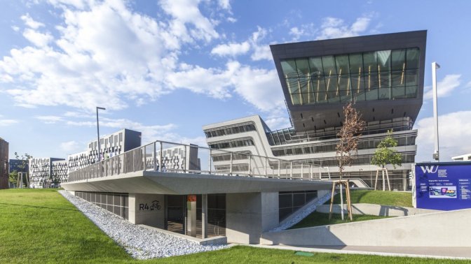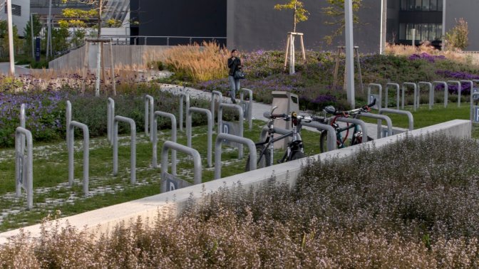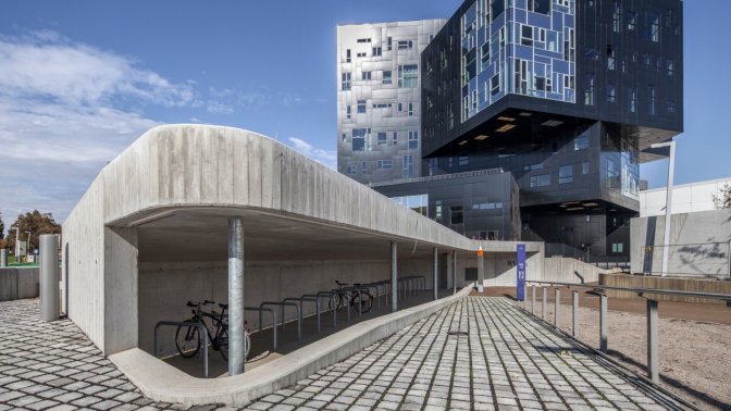 Organisiert wurden die Ströme der Fahrradfahrer mittels einer Strecke rund um den Campus, die an die verschiedenen Fahrradwege der Stadt angeschlossen und mit dem Inneren des Campus verknüpft ist, mit überdachten und offenen Fahrradabstellplätzen in der Nähe der einzelnen Gebäude. Insgesamt wurden 998 Fahrradabstellplätze geplant und gebaut, 668 offene und 330 überdachte, verteilt über das ganze Universitätsgrundstück.
