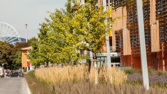 Eines der räumlichen Prinzipien, welches die Gesamtheit des Campus strukturiert, ist das der Flüssigkeit und der Kontinuität der Außenbereiche für die Allgemeinnutzung. Diese räumliche Kontinuität artikuliert unterschiedliche Funktionen und Stationen der öffentlichen Bereiche, wodurch vielfältige Erlebnisse und Umgebungen entstehen, die die Nutzer zu Rundgängen und zu Kommunikation einladen. Außerdem werden sie für bestimmte Zeitspannen auf Zugangsebene der Gebäude Teil der Innenräume, um so die unterschiedlichen architektonischen Objekte mit der allgemeinen Realität des Campus zu verbinden. Um diese räumliche Kontinuität zu schaffen, wurden die Anforderungen der Zugangsmöglichkeiten für Fußgänger privilegiert; Stufen wurden vermieden und für äußere Oberflächen wurden Neigungen von unter 4% sichergestellt, so dass den über 23.000 Studierenden kontinuierlich die Möglichkeit geboten wird, den Campus ohne Hindernisse zu durchlaufen.